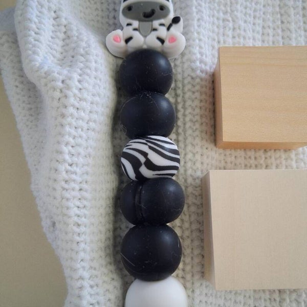 Handgemaakt. Thema zebra. Speenkoord met zebra in de kleuren zwart roze en wit. Met deze speenkoord, raakt je kleintje zijn of haar speentje niet meer kwijt. De handige stevige klip is bedoeld voor aan de kledingstukken die je kind draagt, autostoelgordel, kinderwagen. Voor zowel thuis gebruik als voor onderweg. Totale lengte 28cm. Erg leuk om cadeau te geven. Niet geschikt als speelgoed of bijtring. Laat je kleintje nooit alleen ermee. Het speentje kan ook niet meer op de grond vallen. Hygiënisch, hip en gepersonaliseerd met naam! Speenkoorden mogen volgends NEN12586 veiligheidnorm, inclusief lus, zonder clip, maximaal 22 cm lang zijn. - Noekies .com kan niet aansprakelijk worden gesteld voor enige schade, letsel of ongelukken die voortvloeien uit het gebruik van dit speenkoord, zowel direct als indirect. Een speenkoord Is niet bedoeld om op te bijten. Het gebruik van een speenkoord is op eigen verantwoordelijkheid.