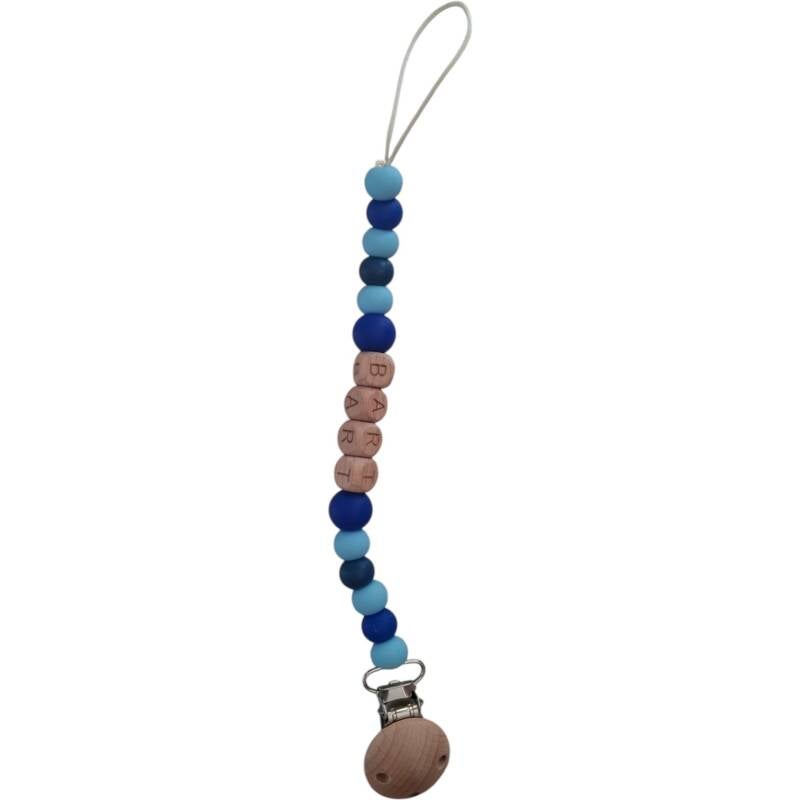 Handgemaakt. Welke naam is voor jou wondertje? Nadat de bestelling voltooid is , ontvangt u een berichtje van mij, welke naam u wenst. En gaan we met liefde aan de slag! De siliconen kralen zijn een mix van lichtblauwe donkerblauwe en cobalt blauwe kleuren. De letterkralen zijn van beukenhout. De kralen zijn volledig BPA-vrij, PVC-vrij, lood-vrij en ftalaat-vrij. Met deze op naam gemaakte speenkoord, raakt je kleintje zijn of haar speentje niet meer kwijt. De handige stevige klip is bedoeld voor aan de kledingstukken die je kind draagt, autostoelgordel, kinderwagen. Voor zowel thuis gebruik als voor onderweg. Erg leuk om cadeau te geven. Niet geschikt als speelgoed of bijtring. Laat je kleintje nooit alleen ermee. Nooit meer het favoriete speentje kwijtraken door zo'n handig speenkoord. Het speentje kan ook niet meer op de grond vallen. Hygiënisch, hip en gepersonaliseerd met naam! Als de naam langer dan 5 letters is (max 9 letters) kan er een aanpassing aan het speenkoord gemaakt worden. Speenkoorden mogen volgends NEN12586 veiligheidnorm, inclusief lus, zonder clip, maximaal 22 cm lang zijn. Noekies .com kan niet aansprakelijk worden gesteld voor enige schade, letsel of ongelukken die voortvloeien uit het gebruik van dit speenkoord, zowel direct als indirect. Een speenkoord Is niet bedoeld om op te bijten. Het gebruik van een speenkoord is op eigen verantwoordelijkheid.