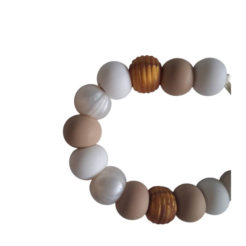 Handgemaakt. Thema parelmoer. Speenkoord met kubus in de kleuren wit beige bruin en goud. Met deze speenkoord, raakt je kleintje zijn of haar speentje niet meer kwijt. De handige stevige klip is bedoeld voor aan de kledingstukken die je kind draagt, autostoelgordel, kinderwagen. Voor zowel thuis gebruik als voor onderweg. Totale lengte 28cm. Erg leuk om cadeau te geven. Niet geschikt als speelgoed of bijtring. Laat je kleintje nooit alleen ermee. Het speentje kan ook niet meer op de grond vallen. Speenkoorden mogen volgends NEN12586 veiligheidnorm, inclusief lus, zonder clip, maximaal 22 cm lang zijn. - Noekies .com kan niet aansprakelijk worden gesteld voor enige schade, letsel of ongelukken die voortvloeien uit het gebruik van dit speenkoord, zowel direct als indirect. Een speenkoord Is niet bedoeld om op te bijten. Het gebruik van een speenkoord is op eigen verantwoordelijkheid.