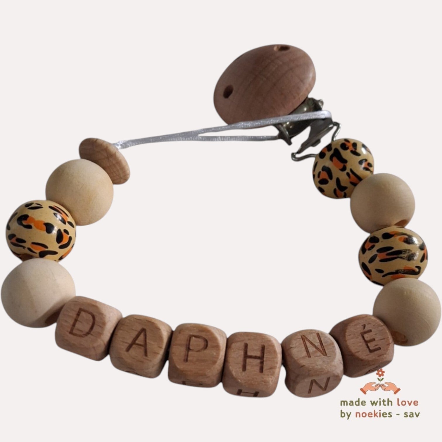noekies naam speenkoord hout panterprint