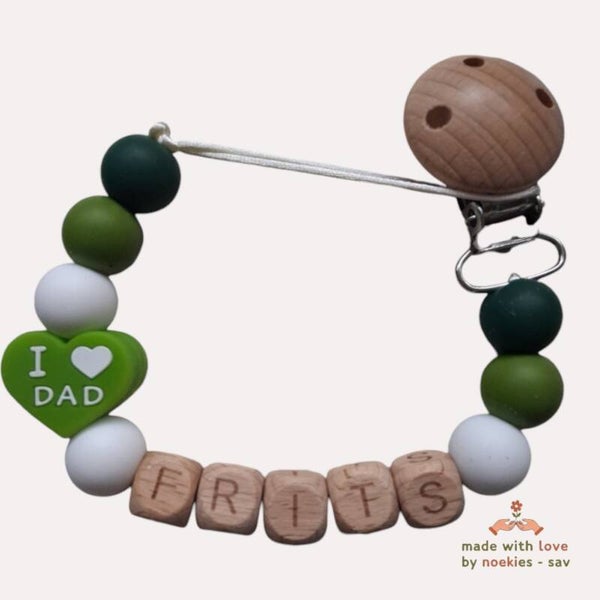 noekies naam speenkoord 1 love mom - dad groen wit