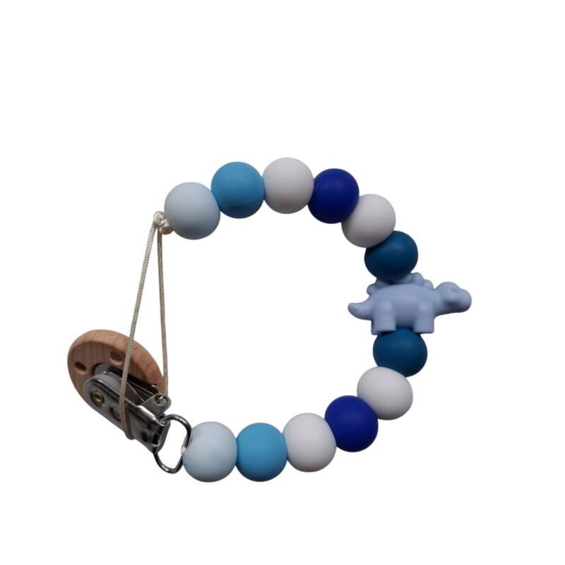 Nooit meer het favoriete speentje kwijtraken door zo'n handig speenkoord. De siliconen kralen van deze speenkoord zijn een mix van blauw, lichtblauw en wit, met lichtblauwe Dino. De kralen zijn volledig BPA-vrij, PVC-vrij, lood-vrij en ftalaat-vrij. De handige stevige klip is bedoeld voor aan de kledingstukken die je kind draagt, autostoelgordel, kinderwagen. Voor zowel thuis gebruik als voor onderweg. Erg leuk om cadeau te geven. Niet geschikt als speelgoed of bijtring. Laat je kleintje nooit alleen ermee. Het speentje kan ook niet meer op de grond vallen. Speenkoorden mogen volgends NEN12586 veiligheidnorm, inclusief lus, zonder clip, maximaal 22 cm lang zijn. - Noekies .com kan niet aansprakelijk worden gesteld voor enige schade, letsel of ongelukken die voortvloeien uit het gebruik van dit speenkoord, zowel direct als indirect. Een speenkoord Is niet bedoeld om op te bijten. Het gebruik van een speenkoord is op eigen verantwoordelijkheid.