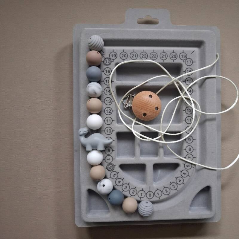 Handgemaakt Nooit meer het favoriete speentje kwijtraken door zo'n handig speenkoord. De siliconen kralen van deze speenkoord zijn een mix van grijs, beige en wit, met grijze Dino. De kralen zijn volledig BPA-vrij, PVC-vrij, lood-vrij en ftalaat-vrij. De handige stevige klip is bedoeld voor aan de kledingstukken die je kind draagt, autostoelgordel, kinderwagen. Voor zowel thuis gebruik als voor onderweg. Erg leuk om cadeau te geven. Niet geschikt als speelgoed of bijtring. Laat je kleintje nooit alleen ermee. Het speentje kan ook niet meer op de grond vallen. Speenkoorden mogen volgends NEN12586 veiligheidnorm, inclusief lus, zonder clip, maximaal 22 cm lang zijn. - Noekies .com kan niet aansprakelijk worden gesteld voor enige schade, letsel of ongelukken die voortvloeien uit het gebruik van dit speenkoord, zowel direct als indirect. Een speenkoord Is niet bedoeld om op te bijten. Het gebruik van een speenkoord is op eigen verantwoordelijkheid.