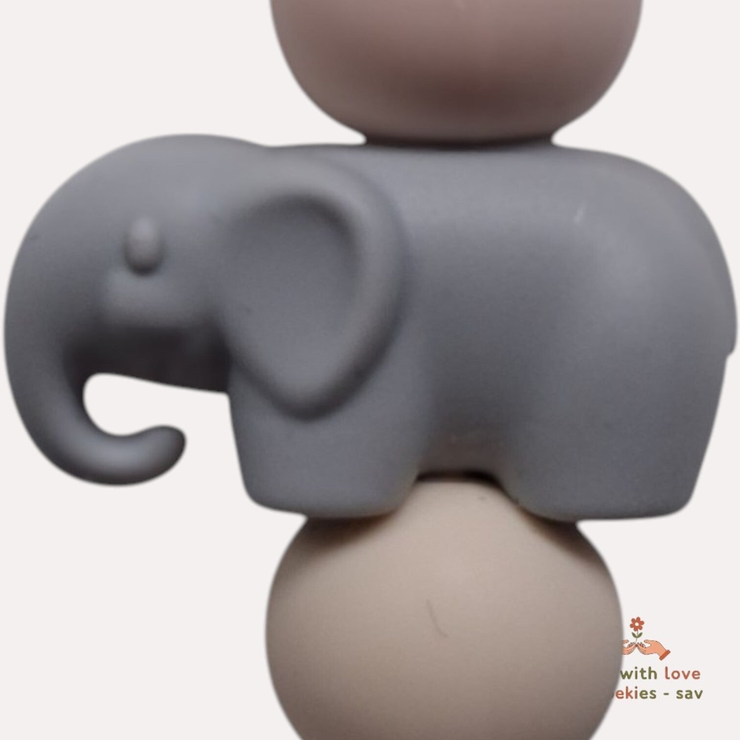 Nooit meer het favoriete speentje kwijtraken door zo'n handig speenkoord. De siliconen kralen van deze speenkoord zijn een mix van grijs, beige en wit, met grijs olifantje. De kralen zijn volledig BPA-vrij, PVC-vrij, lood-vrij en ftalaat-vrij. De handige stevige klip is bedoeld voor aan de kledingstukken die je kind draagt, autostoelgordel, kinderwagen. Voor zowel thuis gebruik als voor onderweg. Erg leuk om cadeau te geven. Niet geschikt als speelgoed of bijtring. Laat je kleintje nooit alleen ermee. Het speentje kan ook niet meer op de grond vallen. Speenkoorden mogen volgends NEN12586 veiligheidnorm, inclusief lus, zonder clip, maximaal 22 cm lang zijn. - Noekies .com kan niet aansprakelijk worden gesteld voor enige schade, letsel of ongelukken die voortvloeien uit het gebruik van dit speenkoord, zowel direct als indirect. Een speenkoord Is niet bedoeld om op te bijten. Het gebruik van een speenkoord is op eigen verantwoordelijkheid.