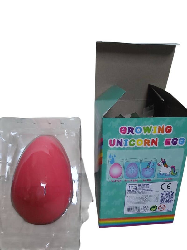 Heb jij weleens een Unicorn / Eenhoorn uit een ei zien komen en zien groeien? Met deze growing egg kan dit zeker. Stop dit unicorn ei in een grote kom water en na ca. 48 uur breekt het ei vanzelf open, en komt er een grote unicorn uit dit ei. verpakking: 10 x 8 x 15 Cm. Kleur donkerroze
