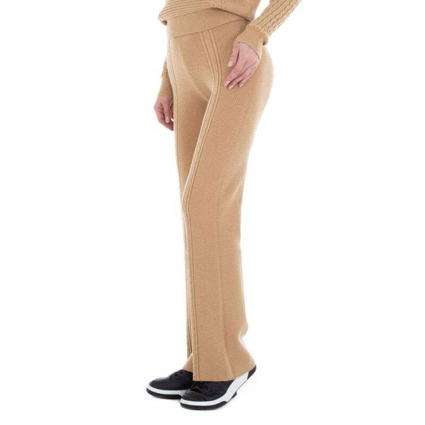 Heerlijke stoffen broek met streep patroon en extra hoge taille , met blind elastiek voor extra comfort. Deze broek heeft een wijd uitllopend pijpje. Materiaal: 50% viscose, 28% polyester, 22% polyamide. kleur taupe. maat ONE SIZE = XS-L afmetingen plat gemeten: taille 32-52cm heup 46-76cm lengte 100cm.