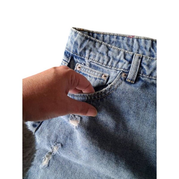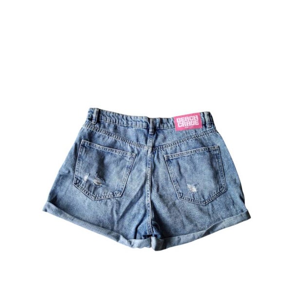 Weinig gedragen. Korte spijkbroek met insteekzakken aan de voorkant. Kontzakken, rits en knoop sluiting. Maat XL afmetingen plat gemeten: taille 41cm heup 55.5cm lengte 34cm. merk FB Sister
