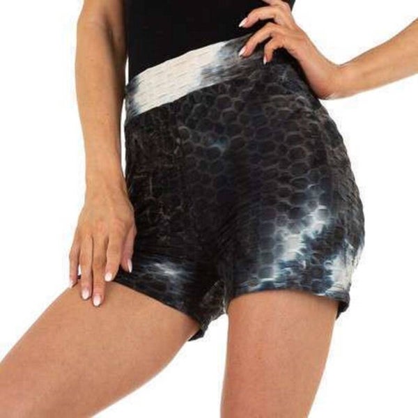 Stretchy korte broek zowel cashual als bij het sporten te dragen 85% polyamide 15% elasthan comfortable met ribbelpatroon kleur: gemeleerd zwart maat S/M. merk: fashion.