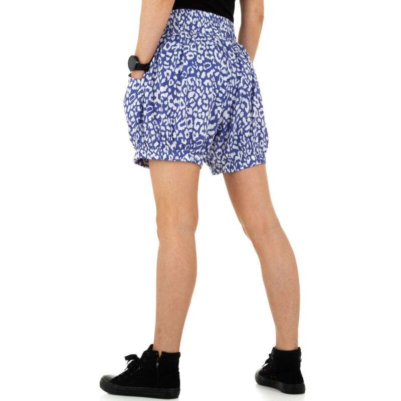 Korte broek comfortable stretchy taille elastische band sier riem insteek zakken kleur blauw 100% viskose maat M/L afmetingen plat gemeten lengte 42cm taille 33cm heup 62cm. Merk: Metrofive