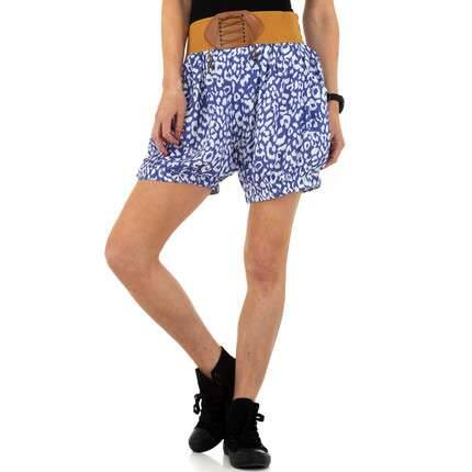 Korte broek comfortable stretchy taille elastische band sier riem insteek zakken kleur blauw 100% viskose maat XL/XXL valt 1 maat kleiner als L/XL afmetingen plat gemeten lengte 42cm taille 34cm heup 63cm.