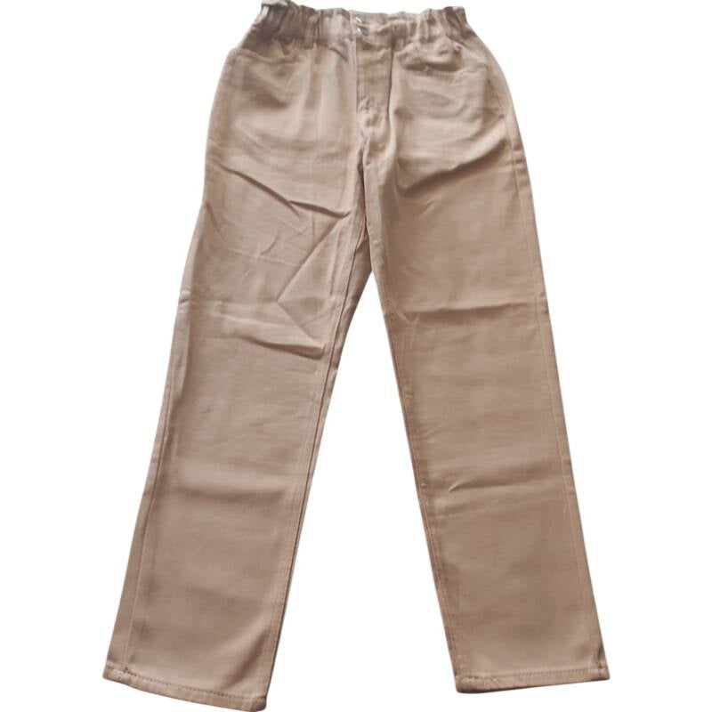 Jeans met insteekzakken en kontzakken , dubbele knoopssluiting en een ritssluiting maat L afmetingen plat gemeten: elastische tailleband taille 36-47cm heupen 53cm binnenbeen lengte 69cm totale lengte 101cm.
