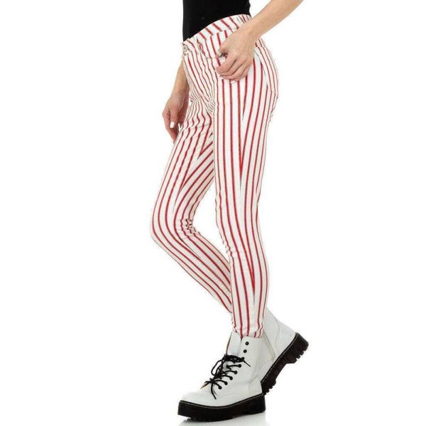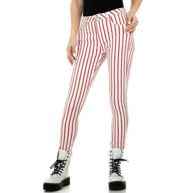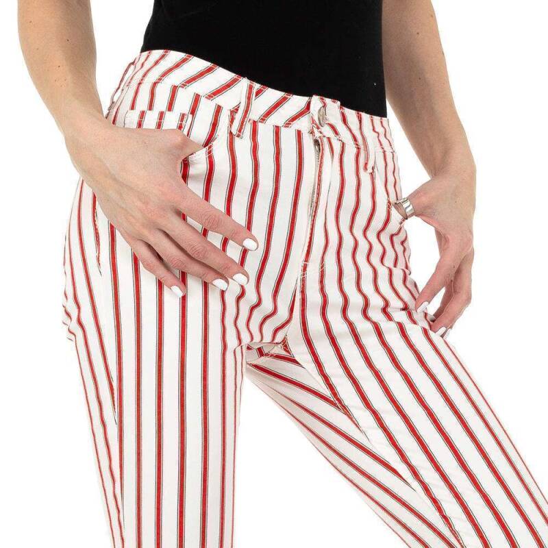 Gestreepte skinny jeans met hoge taille, gemaakt van elastisch, gewassen denim met smalle pijpen. Knoops en ritssluiting, insteekzakken en kontzakken. Materiaal: 98% katoen, 2% elastaan. Hoge taille. Maat S afmetingen plat gemeten taille 35-41cm heup 40-48cm lengte 95,5cm.