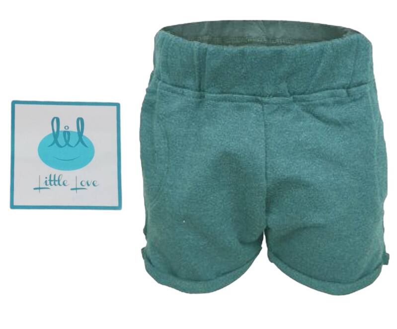 Comfortable short met elastieken taille band en zachte stof 70% katoen 30% polyester kleur: groen Maat 80 12-18 mnd