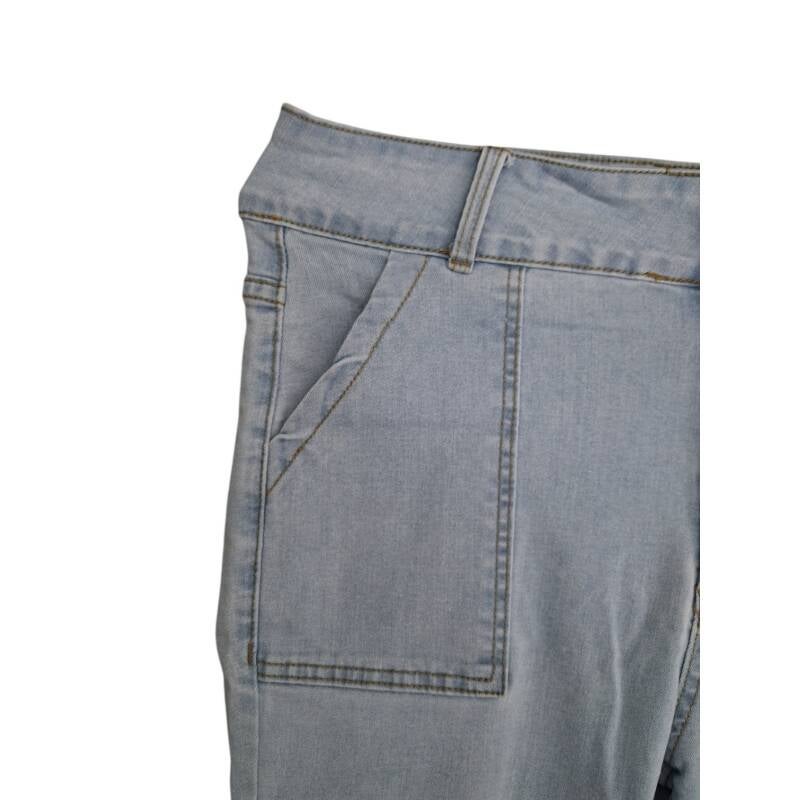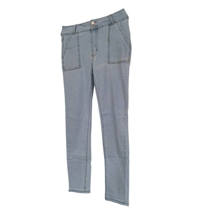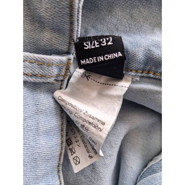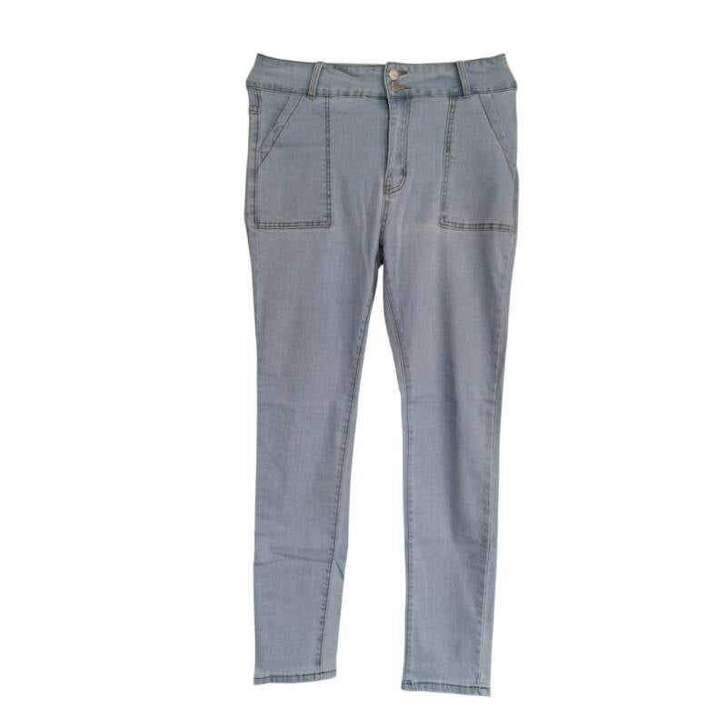 Stretchy skinny jeans lichtblauw maat 32 is gelijk aan maat L afmetingen plat gemeten taille rekbaar 40-49cm heup rekbaar 48-58cm binnenbeen lengte 75cm totale lengte 104cm merk onbekend.