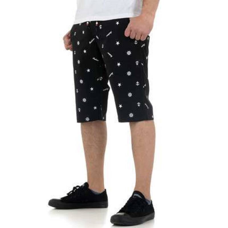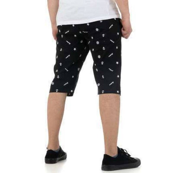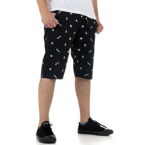 Korte broek met een blind elastiek met aanrijgkoord De korte broek heeft boot symbolen waaronder roer, anker, en tekst fashion Deze korte broek valt onder kniehoogte en heeft insteek broekzakken 100% katoen maat W30-F40 is gelijk aan maat S. afmetingen plat gemeten taille 46cm heup 50cm lengte 55cm. Merk: Ature
