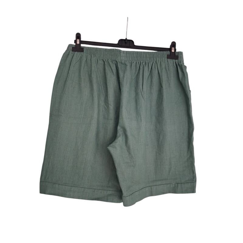 Heerlijke zomerbroek met insteekzakken en een elastische tailleband. Kleur groen. Materiaal: 97% katoen 3% elasthane. Maat XL